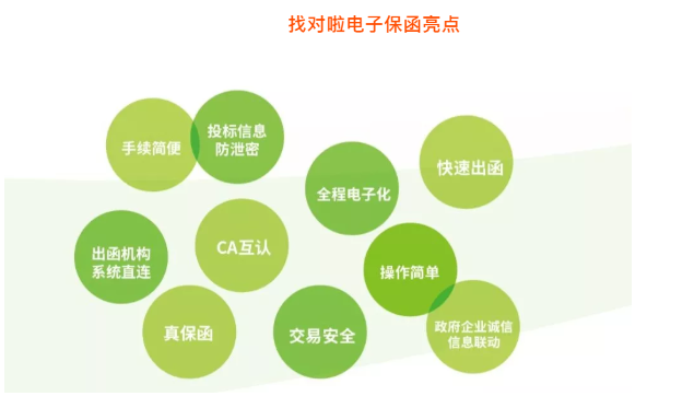 在以往的公共资源交易活动中,各投标单位主要采用支票和电汇等方式缴纳投标保证金,辅助应用银行或者担保公司的纸质保函。但收退保证金的手续繁琐,资金占用时间较长,累计金额巨大,给投标企业带来很大的资金压力。找对啦电子保函具有办理简单便捷、方便查验真伪、全程电子留痕的特点,技术优势明显。首先,电子保函投标保证金可实现7*24小时线上办理和管理,不受时间、地点的限制,能够降低管理成本;其次,线上CA锁方式验证身份并申请开具电子保函,可实现全程留痕,方便查验真伪,有效加强交易监管;同时也有效减轻企业负担,降低交易成本,激发企业参与市场竞争活力。